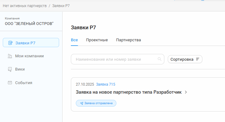 3. Отслеживайте вашу заявку в разделе Заявки Р7: