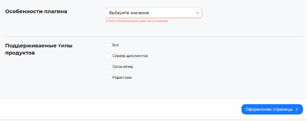 - Поддерживаемые типы продуктов. Вам потребуется выбрать одно или несколько значений: Все, Сервер документов, Органайзер, Редакторы.