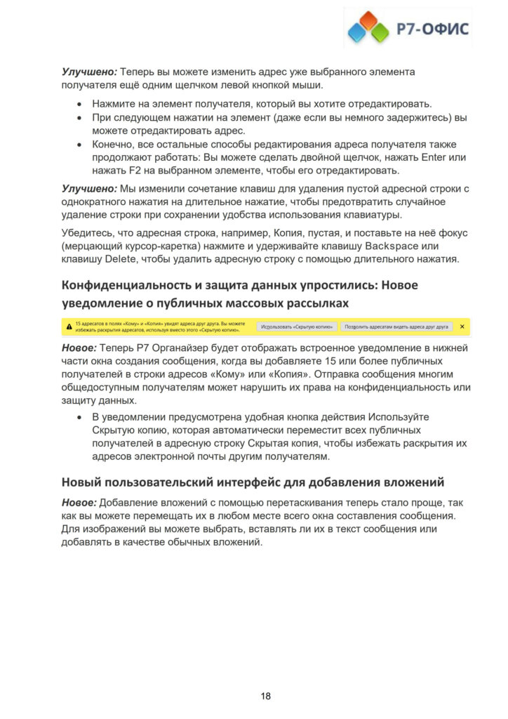 Информация о новых функциях, улучшениях и исправлениях в обновлении продукта