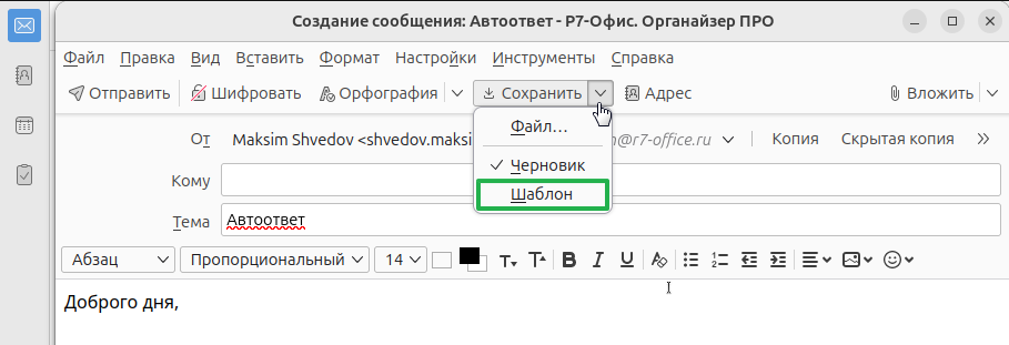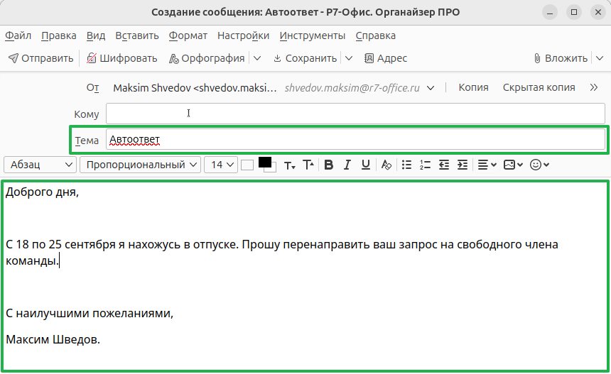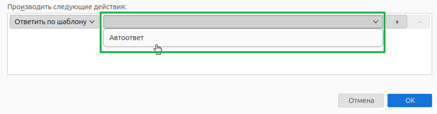 В Органайзер и Органайзер ПРО нет отдельной настройки автоответов, но данный функционал можно настроить с помощью фильтров сообщений и шаблонов писем.