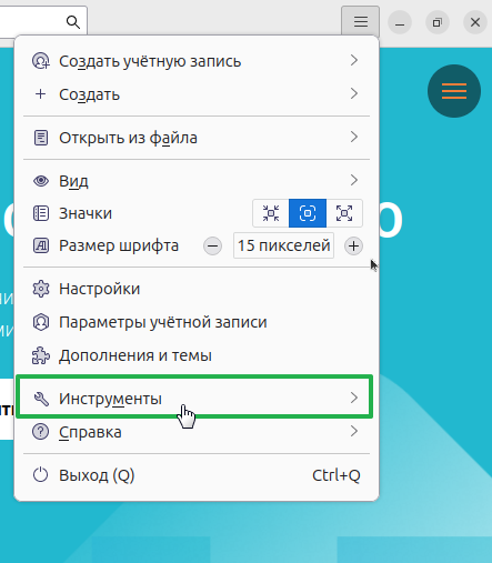 1. Нажмите значок Бутерброд в верхнем правом углу окна приложения: