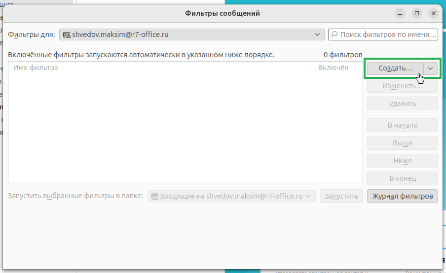 8. Нажмите кнопку Ок, и закройте окно Фильтры сообщений.