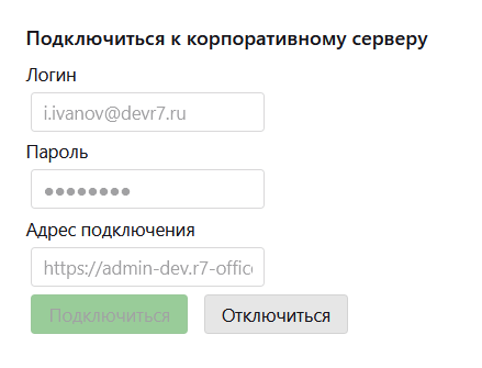 Настройки учетной записи — Параметры сервера — Подключиться в корпоративному серверу: