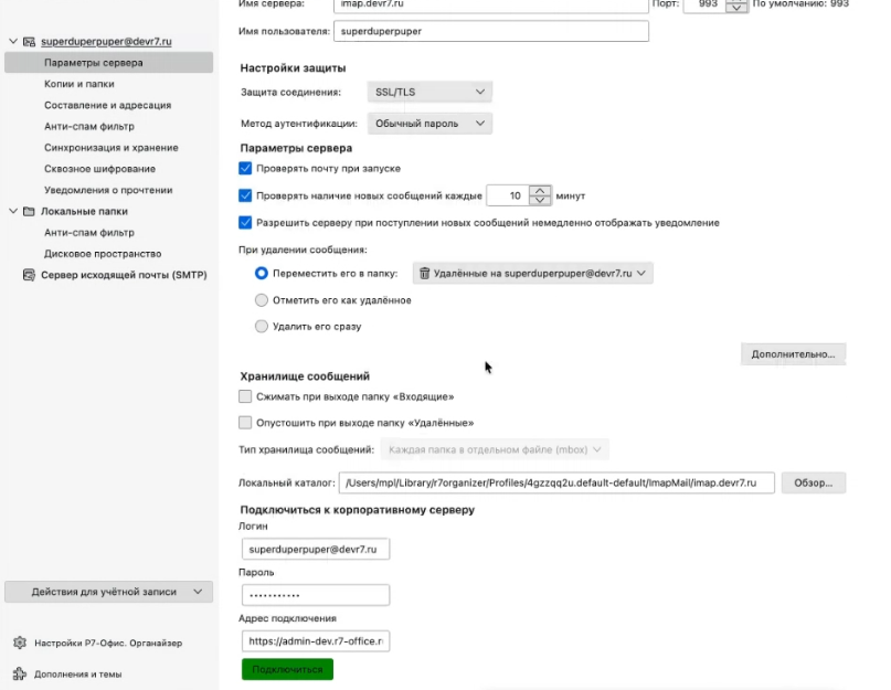 - Адрес подключения: url нахождения корпоративного сервера (например