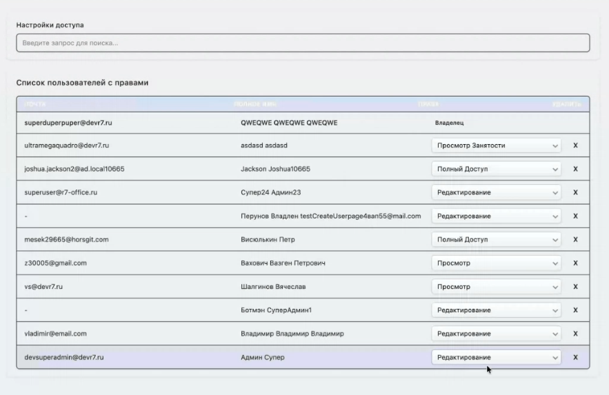 - Нажмите на крестик напротив пользователя для удаления доступа.