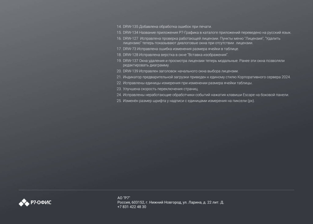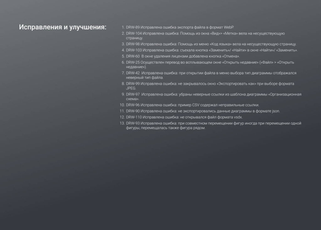 Информация о новых функциях, улучшениях и исправлениях в обновлении продукта