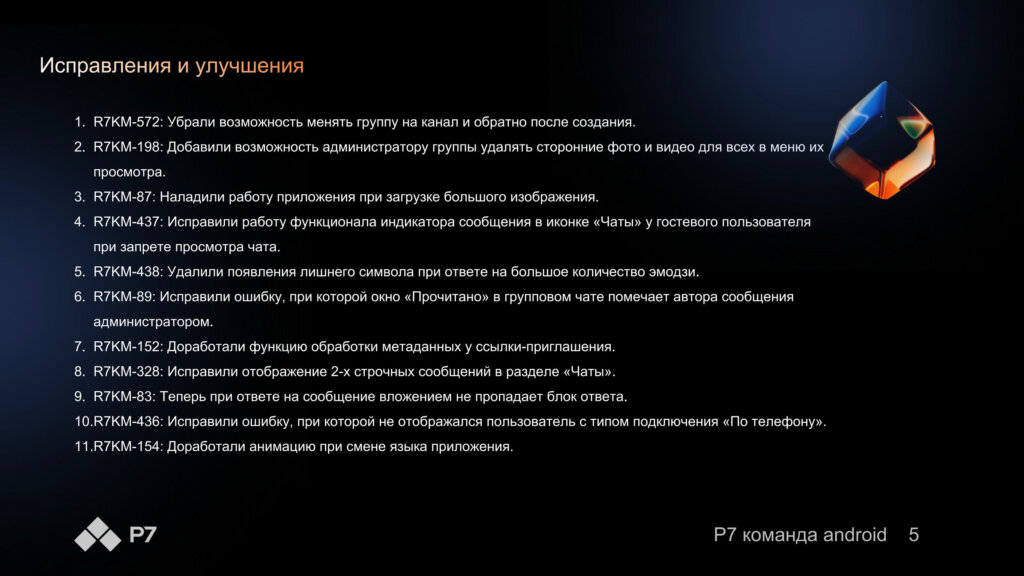 Информация о новых функциях, улучшениях и исправлениях в обновлении продукта