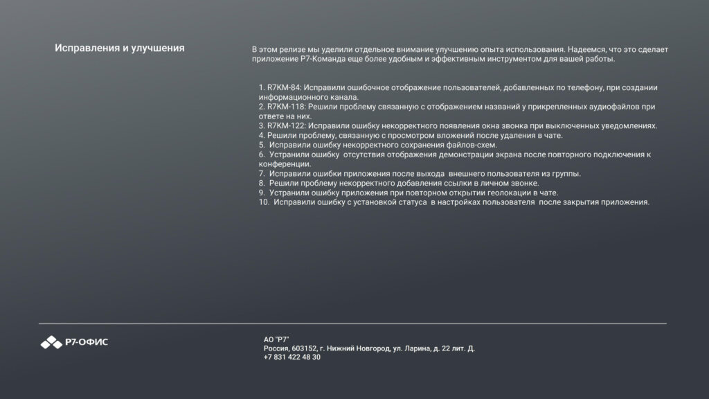 Информация о новых функциях, улучшениях и исправлениях в обновлении продукта