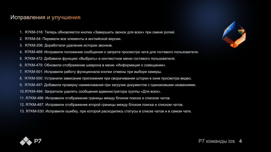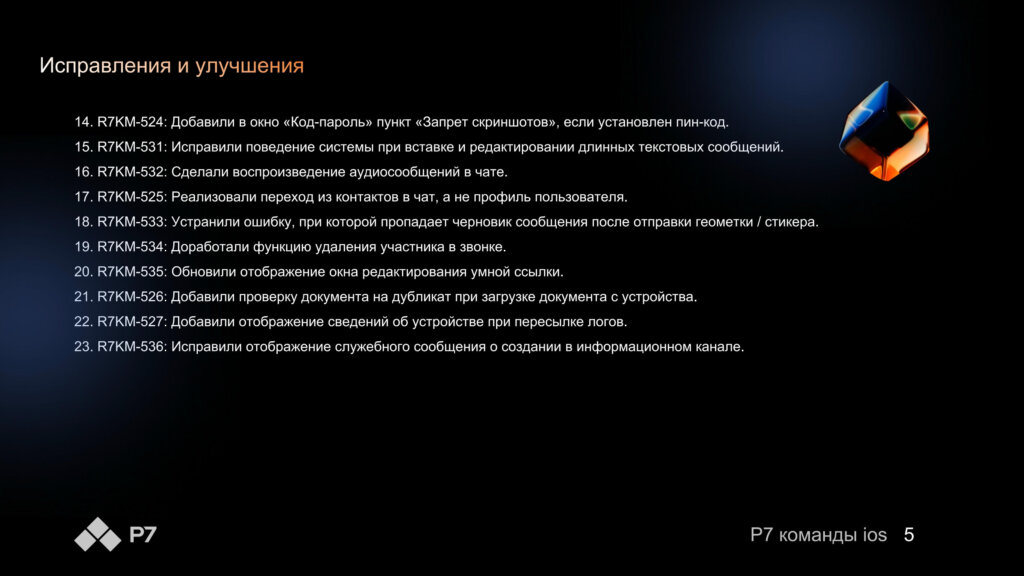 Информация о новых функциях, улучшениях и исправлениях в обновлении продукта