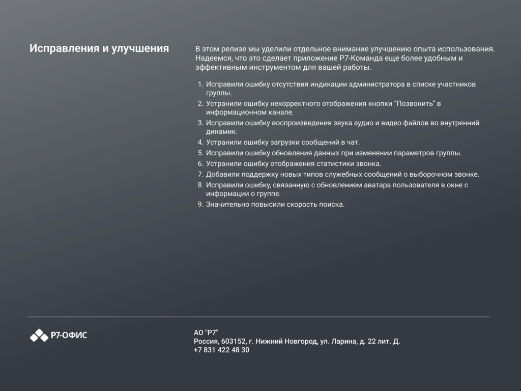 Информация о новых функциях, улучшениях и исправлениях в обновлении продукта