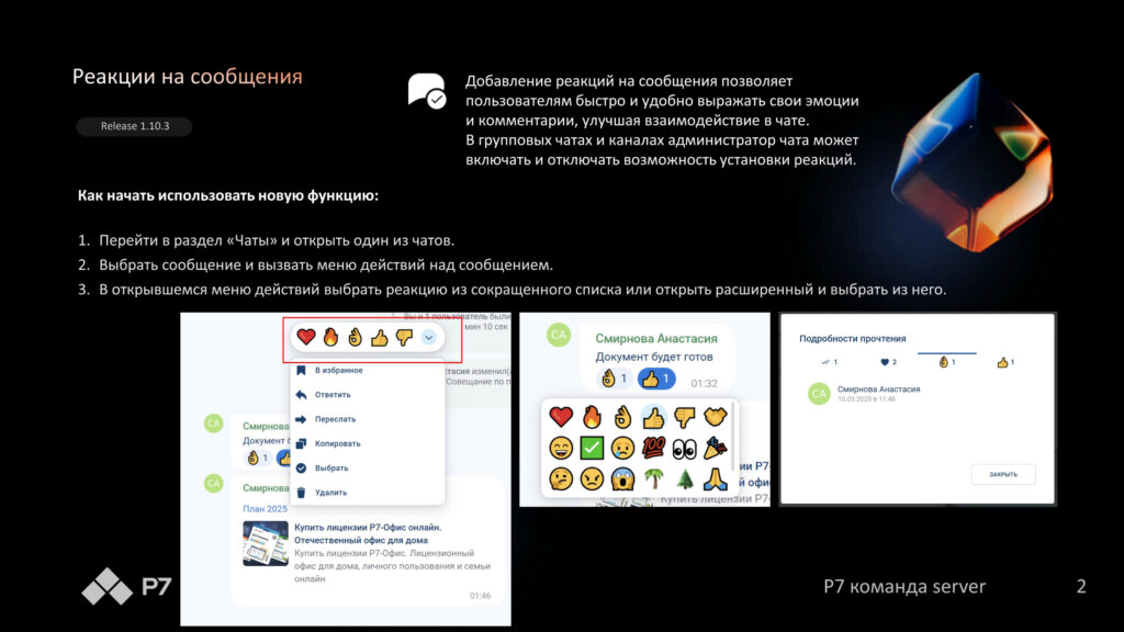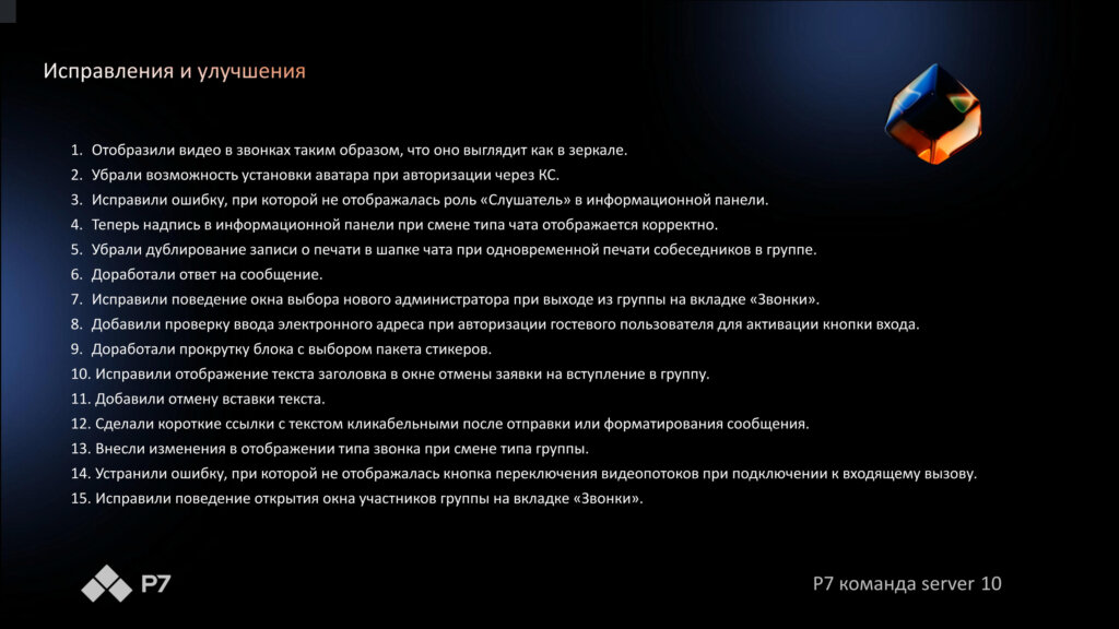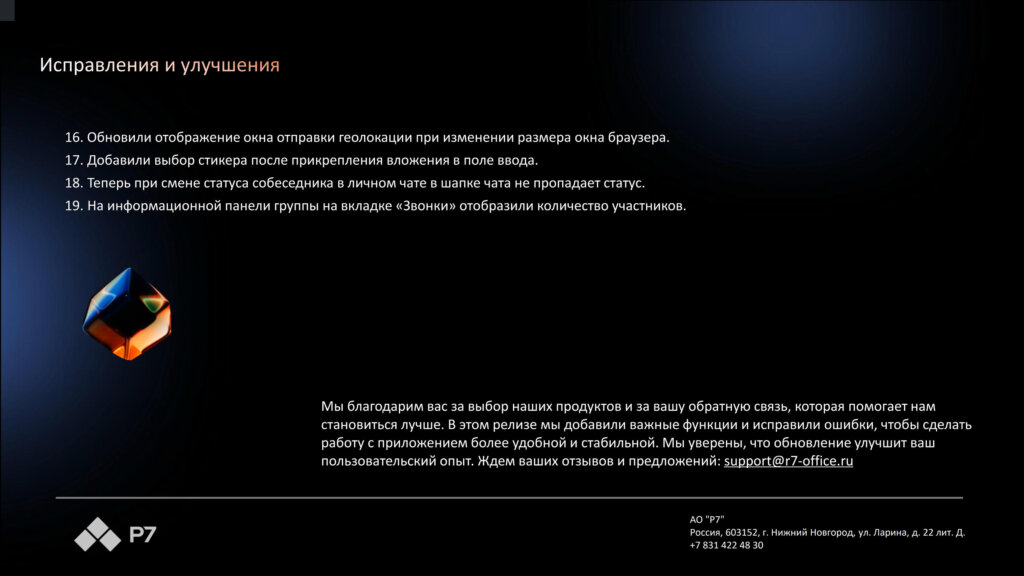 Информация о новых функциях, улучшениях и исправлениях в обновлении продукта