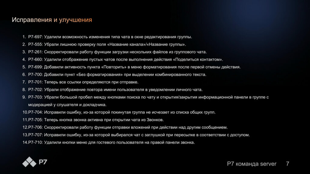 Информация о новых функциях, улучшениях и исправлениях в обновлении продукта