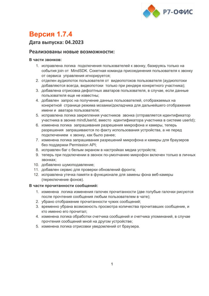 Информация о новых функциях, улучшениях и исправлениях в обновлении продукта